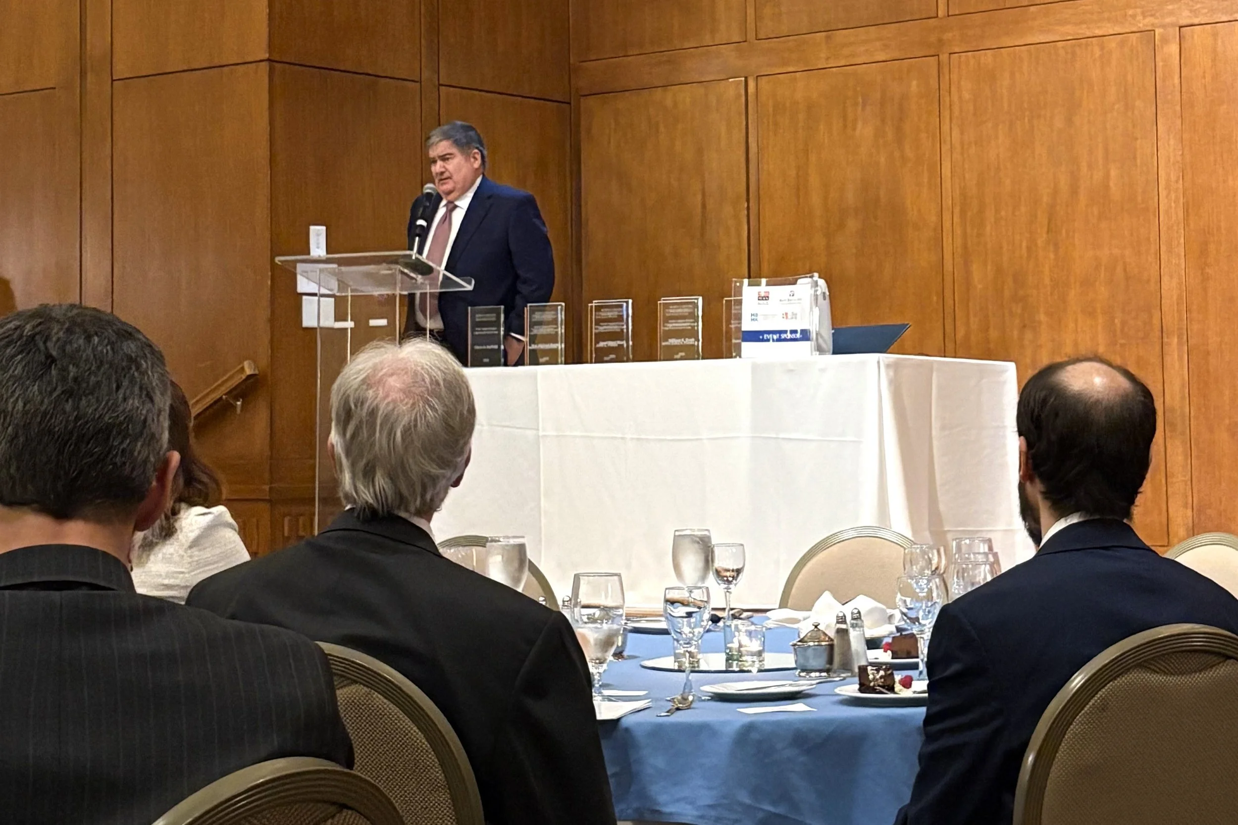 Mike Begley delivers and acceptance speech, Oct. 17, following his induction into the N.C. Bar Association Legal Practice Hall of Fame. Courtesy photo