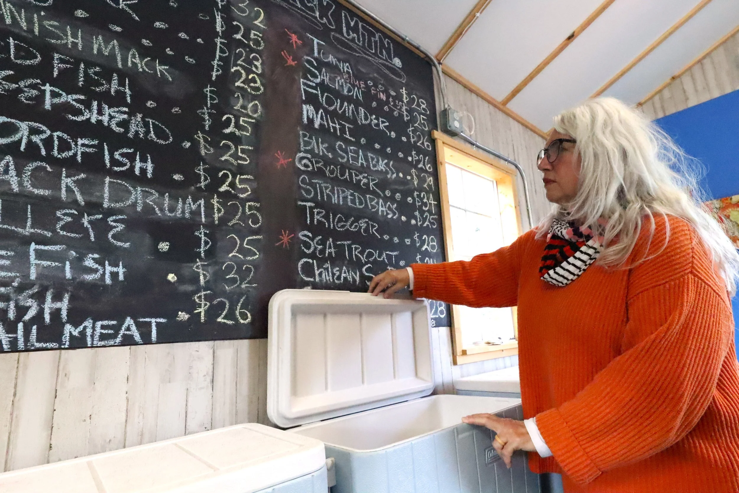 Debra Queen, who operates Fairview Seafood Co. with her husband Roger, prepares for the weekly arrival of fresh catches in Black Mountain. The couple, which has been selling fresh seafood in the area since 2015, is selling their East State Street operation. Photo by Fred McCormick
