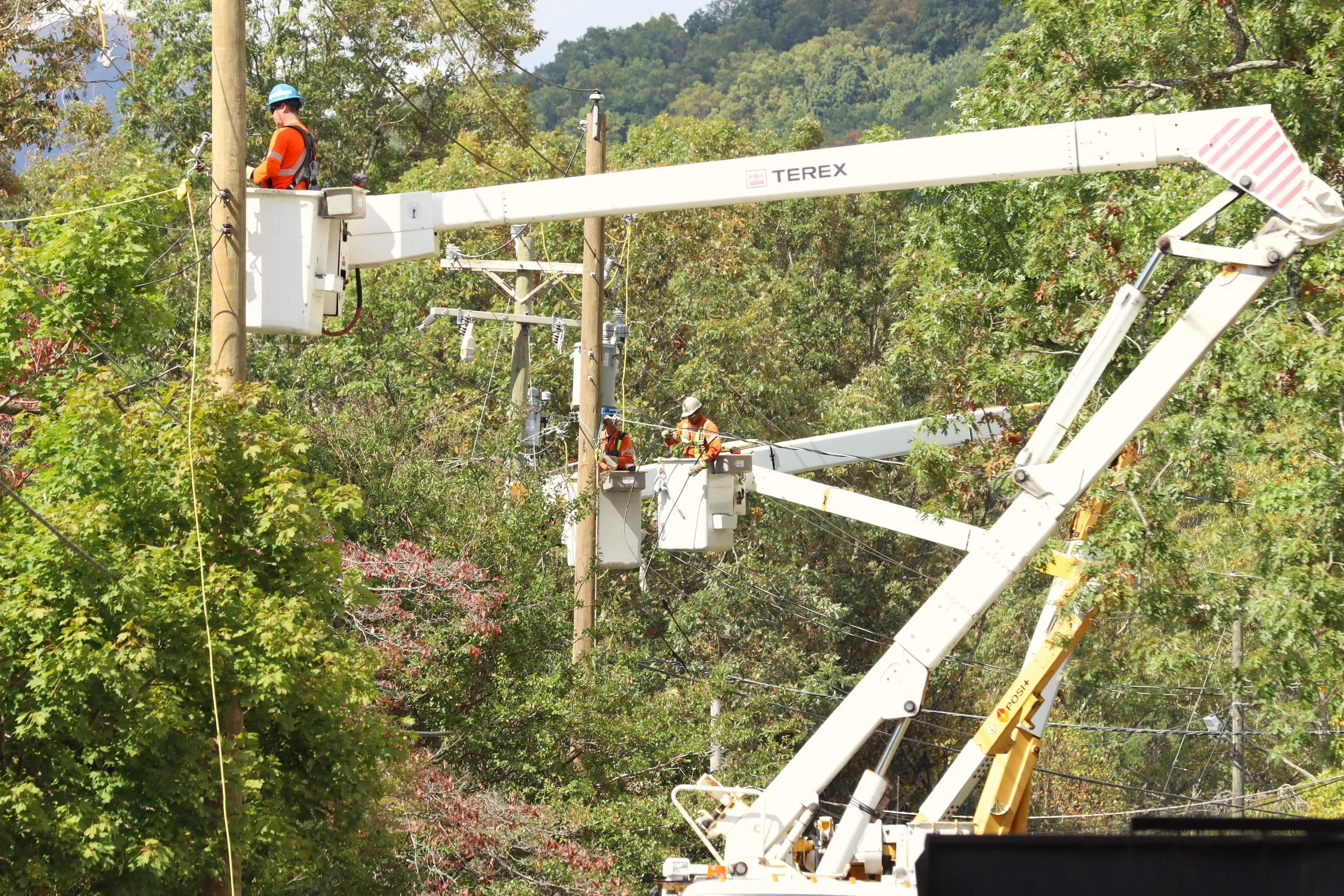 Utility crews work to restore power along Montreat Road in Black Mountain. Photo by Fred McCormick
